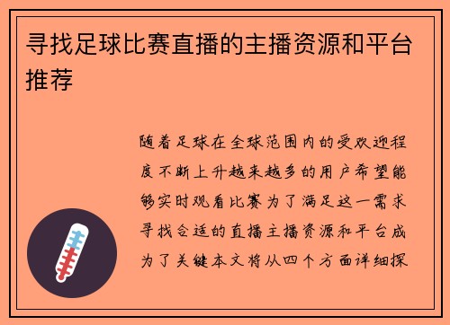 全面解析看足球比赛直播的最佳下载资源与平台推荐