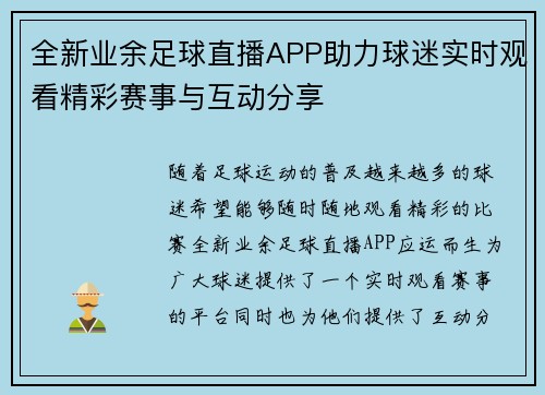 全新业余足球直播APP助力球迷实时观看精彩赛事与互动分享